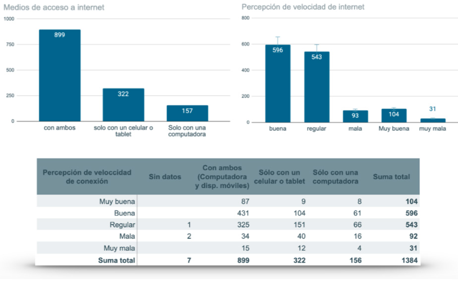 Unos 93 casos declararon tener una velocidad de internet mala, mientras que 31 señalaron que su conexión posee muy mala velocidad. Entre ambos, suman 124 casos, un 9% de los participantes de este relevamiento.