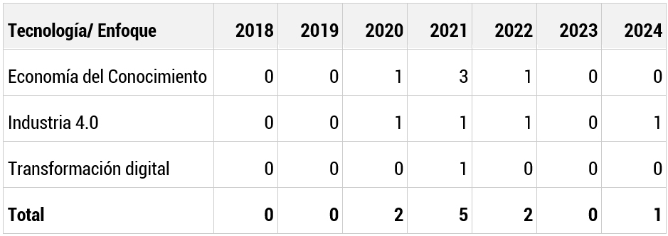 elaboración propiaDe estos instrumentos, el 50% fueron lanzados en 2021, aunque en lo que se refiere a los que buscan impulsar la industria 4.0, existe una clara dispersión durante el período estudiado (Tabla 8).