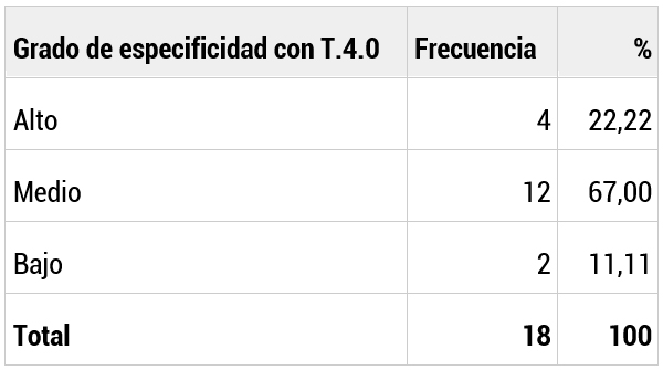 Una vez cargada la información, fue necesario codificar algunas variables para obtener datos cuantificables. Por ejemplo, en el caso del tipo de instrumento, se estilizaron los resultados en función de las siguientes categorías: programa de financiamiento e incentivos fiscales2, planificación y gobernanza3, programa de sensibilización y capacitación4, programa de asistencia técnica5, y plan de infraestructura tecnológica6. Por su parte, para establecer el grado de especificidad del instrumento frente a las T4.0, se consideró que los que presentan un nivel bajo de especificidad son aquéllos que pueden resultar relevantes para actores con inserción en el paradigma 4.0, aunque no se dirijan exclusivamente hacia ellos. Se hace referencia, por ejemplo, a programas de asistencia técnica y capacitación para PyMES industriales. Los instrumentos con un nivel de especificidad medio son los que se enfocan a la economía del conocimiento en general, a la transformación digital y la infraestructura tecnológica. Estos instrumentos pueden ser relevantes para agentes próximos al paradigma 4.0, en tanto que pueden contribuir al desarrollo de capacidades vinculadas con las tecnologías digitales, sunque no aborden particularmente vectores 4.0. Finalmente, los instrumentos con un nivel alto de especificidad son aquéllos que explícitamente hacen alusión entre sus objetivos y/o destinatarios, a promover la industria 4.0 y/o algún vector específico que la compone.