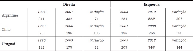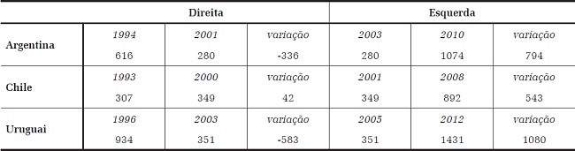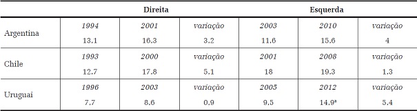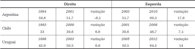 Os dados permitem afirmar que as ações desses governos de esquerda foram substantivamente distintas das dos seus antecessores, mudando a trajetória do principal indicador de desigualdade de renda e diminuindo a pobreza e a extrema pobreza de maneira sensível. Pode-se afirmar, também, que a melhoria desses indicadores foi mais forte na Argentina e no Uruguai do que no Chile, apesar de esse país também apresentar bons resultados na região. Ou seja, aqui, como nas políticas anteriores, o conjunto de fatores analisados mostra que a investida à esquerda, nas reformas de todos os governos analisados, foi contrastante com a de seus antecessores, mas, entre eles, o Chile apresenta menor escala.