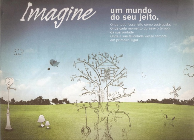 Apesar disso, nos últimos anos os processos de privatização urbana têm se aprofundado, especialmente devido à proliferação de enclaves fortificados. No que tange à habitação, desde a década de 1990, tem havido uma expansão e diversificação significativas da incorporação de condomínios fechados em Salvador. Os novos empreendimentos chegam a ter mais de mil unidades e ofertam a centralização das atividades de trabalho, lazer e serviços. Nesta cidade, até alguns empreendimentos do programa de moradia popular Minha Casa, Minha Vida têm adotado a fórmula da fortificação ( Arantes, 2011 ). Desejando convertê-los em “cidades blindadas dentro da cidade” ( Amendola, 2000 ), a publicidade desses empreendimentos tenta marcar a sua diferença em meio à vida urbana. Numa dessas publicidades, apresentada na Figura 1 , fica bastante explícita a oferta de um mundo individual e único, ou seja, uma antípoda do que Hannah Arendt (2008) considerou uma das dimensões mais básicas da esfera pública: o compartilhamento do interesse por um mundo comum, capaz de reunir os seres humanos na companhia uns dos outros e ao mesmo tempo evitar que eles colidam entre si.