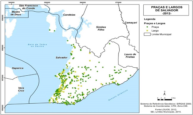 Existe uma desigualdade no acesso aos espaços públicos que se deve tanto a um planejamento urbano que vem historicamente privilegiando determinadas áreas da cidade, quanto a sua incapacidade de diminuir as iniquidades geradas pelo processo de urbanização de Salvador, que foi formada em boa parte por ocupações informais e espontâneas. Ainda que se possa ter o quantitativo desses espaços de uso coletivo, durante muito tempo era difícil saber sua real situação. Como salientou Serpa (2003) , muitos acabam sendo espaços ociosos, ornamentos casuísticos do planejamento urbano, sobras de loteamentos que, sem equipamentos, usos ou identidades, podem ser desfeitos em outras obras ou nas próximas divisões da gleba. Por exemplo, a própria Prefeitura Municipal de Salvador (PMS) não possuía, durante a realização da nossa pesquisa, um levantamento atualizado da situação desses espaços, conforme entrevistas realizadas com os setores responsáveis por esses equipamentos. As últimas duas gestões da prefeitura municipal de Salvador (2013-2020), no entanto, deram uma grande ênfase aos projetos de requalificação urbana, desenvolvendo reformas em diversos trechos da orla e também em variadas praças e largos. Notícias recentes da gestão municipal afirmam que foram construídas e/ou reformadas 550 praças em Salvador nesse período (DESAL..., 2020), o que seria uma ampliação considerável da quantidade desses equipamentos na cidade, tendo em vista o número deles em 2012.5