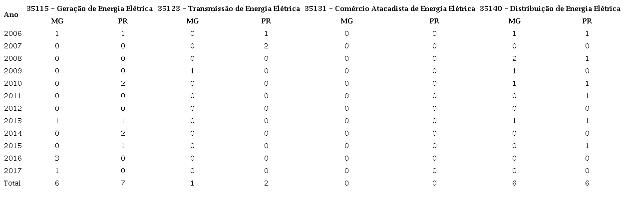 Para isso, utilizamos dados do volume de contratações e do número de acidentes de trabalho, os quais foram obtidos por meio do Departamento Intersindical de Estatística e Estudos Socioeconômicos (DIEESE), da Agência Nacional de Energia Elétrica (ANEEL) e dos departamentos de Recursos Humanos das referidas empresas. Analisamos também material qualitativo obtido em entrevistas em profundidade realizadas com 13 trabalhadores terceirizados e 4 representantes sindicais da Cemig, além de um técnico do DIEESE. No caso da Copel, entrevistamos 3 trabalhadores, 4 gestores, um ex-diretor da subsidiária de distribuição da companhia e 2 representantes sindicais. Justifica-se o menor número de entrevistas com trabalhadores da companhia paranaense de energia porque a pesquisa realizada no Paraná abarcava originalmente também outras duas empresas estatais, a Companhia de Habitação do Paraná (Cohapar) e a Companhia de Saneamento do Paraná (Sanepar). Uma vez que utilizamos dados quantitativos do volume das contratações e dos números de acidentes de trabalho, as entrevistas visaram complementar e enriquecer a análise com informações de natureza mais qualitativa, razão pela qual consideramos a quantidade de entrevistas realizadas suficiente.