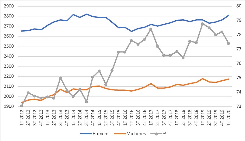 Assim como a desigualdade racial, a desigualdade de gênero no Brasil tem sido evidenciada de forma diversa, atravessando índices de ocupação no mercado de trabalho e violência. Embora distintos, o trabalho produtivo e reprodutivo são esferas mutuamente fundamentais para a reprodução social. A realização da vida não se resume ao espaço de trabalho, ainda que o este seja o cerne dos estudos de desigualdade. Ao longo dos anos 2000, o aumento da inserção das mulheres no mercado de trabalho tem proporcionado uma ampliação significativa da igualdade de renda ( Leite, 2017 ).