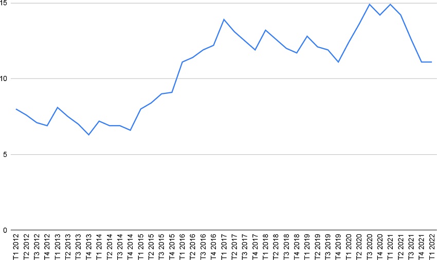 esta permanece em patamares elevados, registrando menos de 10% apenas em Maio de 2022, quando atinge 9,8%, o equivalente a 10,6 milhões de pessoas desempregadas ( Instituto brasileiro de Geografia e Estatística, 2022);
