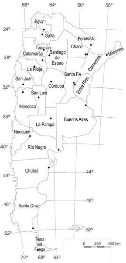Se agregó como figura 1 la división política de Argentina con la nomenclatura de las provincias a los fines de que lectores no residentes en el país puedan interpretar mejor los resultados.