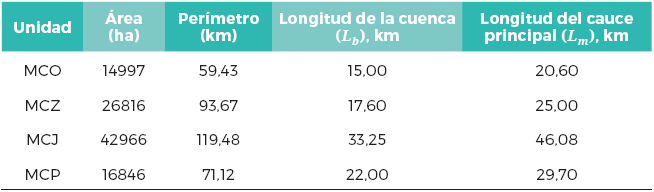 El análisis morfométrico permite conocer algunas de las características físicas de las cuatro MC estudiadas mediante el estudio de las particularidades de sus aspectos de relieve, de área y longitudinales (Kulkarni, 2015). Este análisis permite hacer comparaciones entre las distintas MC que ayudan a entender el funcionamiento hidrológico y orientan sobre los aspectos que se deben atender para su manejo.