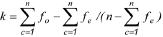 (6)donde fo es la suma de las frecuencias observadas en la diagonal principal de una tabulación cruzada, fe es la suma de las frecuencias esperadas en esa diagonal, y n es el número total de casos (categorías).