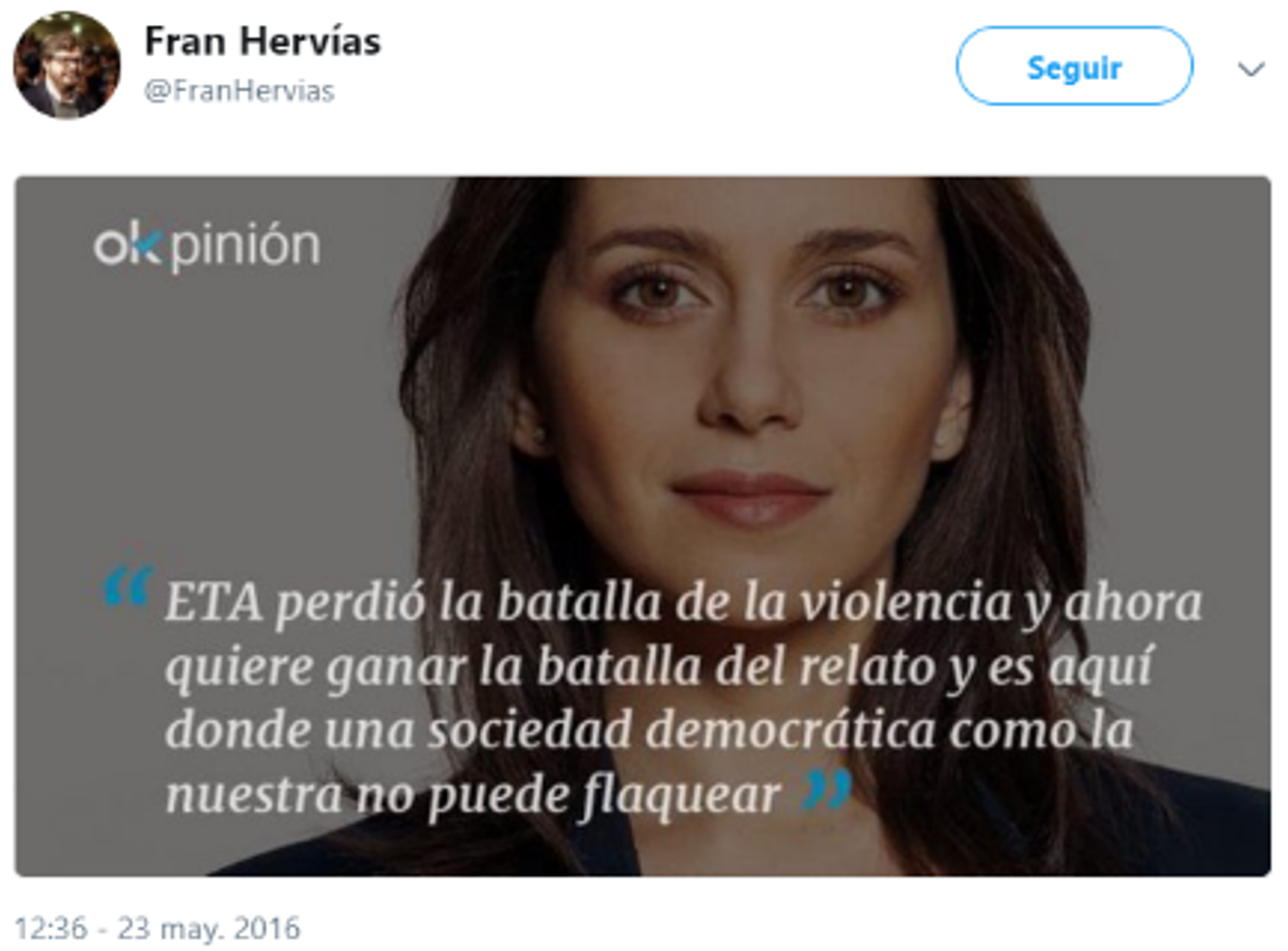 Se advierte también en los mensajes de Ciudadanos, como el del siguiente tuit: