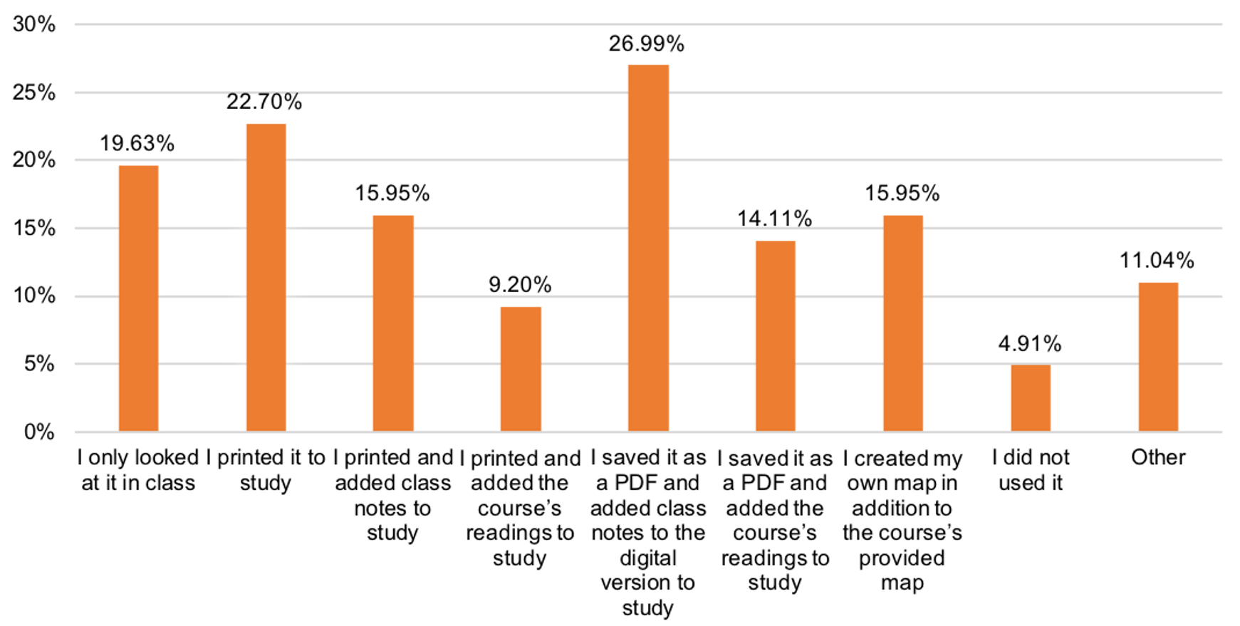 Other: Half of the answers (9) highlighted the preference for writing linear notes from the maps. Figure 3.