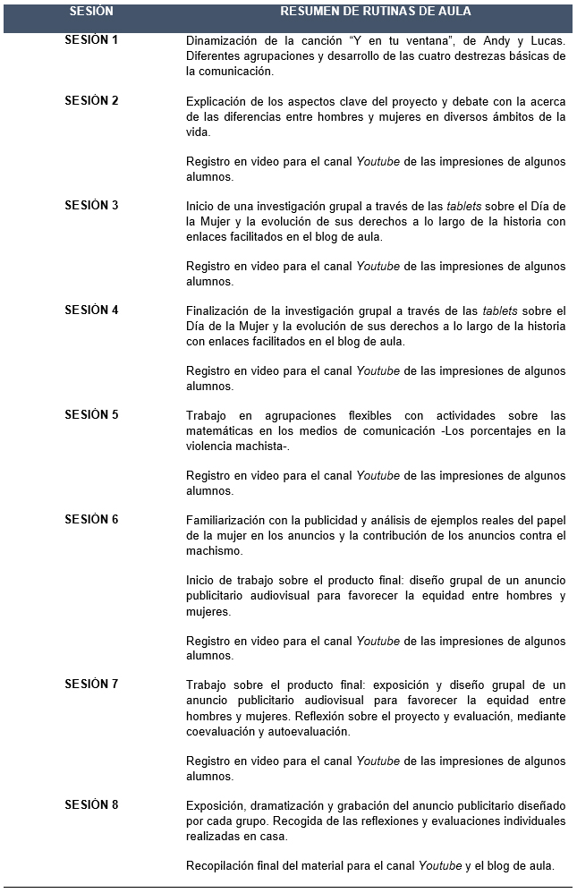Con este proyecto integrado, que ha contado como elemento transversal con la igualdad entre mujeres y hombres, se ha podido cumplir el objetivo principal de la indagación: el uso de las TIC desde una metodología basada en proyectos coadyuva con muy buenos resultados al desarrollo de las habilidades orales en los estudiantes de Educación Primaria.