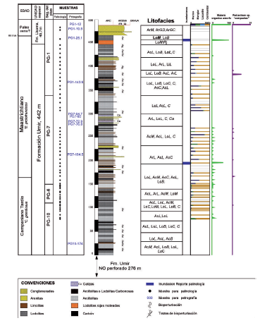 Esta interpretación de estratigrafía de secuencias debe corroborarse con secciones superficiales, con la interpretación de otros pozos profundos y el amarre con información sísmica, pero siguiendo el detalle del análisis litofacial y de palinofacies realizado en este estudio.