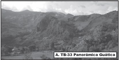 Estación TB-33, panorámica del área del municipio de Guática (departamento de Risaralda) mostrando el espesor de los depósitos de flujos piroclásticos del Miembro Inferior de la Formación Combia.