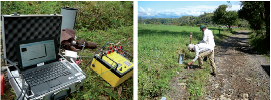 Las técnicas implementadas incluyen la realización de perfiles de resistividad eléctrica a partir de datos de resistividad aparente tomados en campo con el método Dipolo-Dipolo en dos sectores cuyos estudios morfotectónicos preliminares muestran una expresión en superficie de la Falla Abriaquí. La ubicación de las líneas eléctricas corresponde a los sitios denominados Sincerín y El Chaquiro en las cuencas de los ríos Musinga y El Cerro, respectivamente.