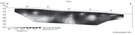 Perfil de resistividad eléctrica para el sector de El Chaquiro. La localización de la línea eléctrica se encuentra en la FIGURA 3.