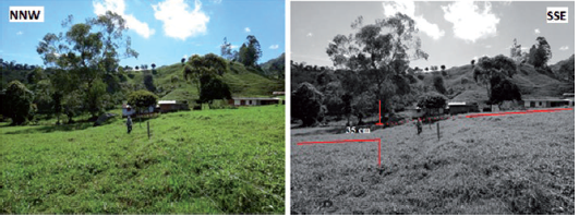 Para el sector El Chaquiro (FIGURA 6), la Falla Abriaquí se manifiesta con una expresión moderada, ya que los procesos principales son de carácter erosivo y deposicional, sin embargo, la presencia de silletas permite trazar la falla en el sector, y la proyección de la falla sobre depósitos aluviotorrenciales del río El Cerro en su parte alta muestra un salto de aproximadamente 35 cm, el cual sigue una dirección paralela al trazo de la Falla Abriaquí (Noriega y Caballero, 2015) (FIGURAS 7 y 8).