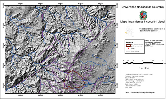 Rodríguez, B. 2005. Procesamiento e interpretación estructural de imágenes satelitales del Altiplano Nariñense. Trabajo de Grado. Universidad Nacional de Colombia, Bogotá, Colombia. 20p.