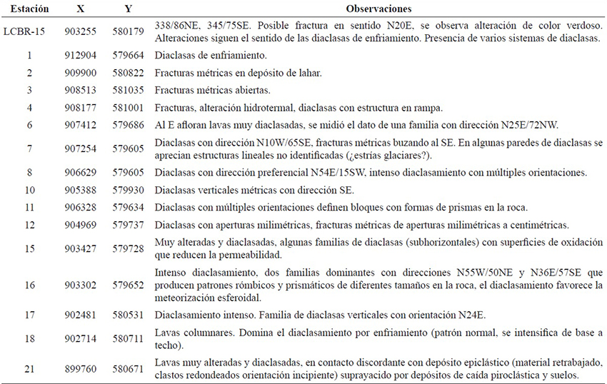 Los datos obtenidos en campo y el análisis RMR sugieren rocas de buena resistencia, pero con presencia de fracturas que representan porosidad secundaria y mejoran la permeabilidad superficial, rasgos importantes a tener en cuenta en la exploración de recursos geotérmicos.