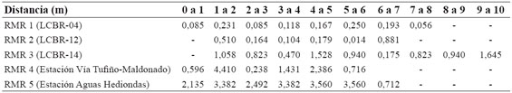 Las medidas en cada una de las estaciones están resumidas en la TABLA 4.