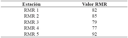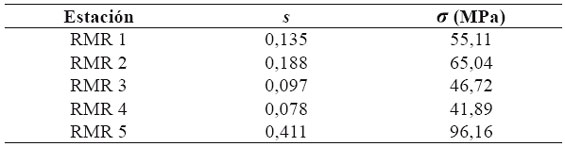 Los valores obtenidos de esfuerzo compresivo para cada RMR se presentan en la TABLA 7.