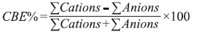 In order to verify the reliability of the chemical analyzes presented by the GSC, we calculated the Charge Balance Error ion (Equation 1) to identify the ionic imbalances and analytical errors at the time of sample selection. If the results of the Charge Balance Error ion (CBE) exceeds +/- 10% are not suitable for plot and geothermometers (Nicholson, 1993).