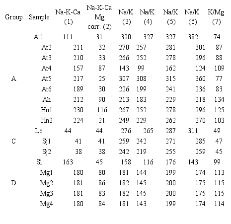 Giggenbach, W.F. (1988). Geothermal solute equilibria. Derivation of Na-K-Mg-Ca geoindicators. Geochimica et Cosmochimica Acta, 52(12), 2749-2765. doi: 10.1016/0016-7037(88)90143-3.