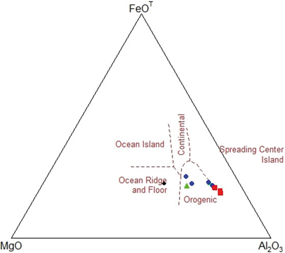 Las variaciones de elementos mayores, menores y los diagramas de discriminación geotectónica permiten concluir que las rocas analizadas se generaron a partir de sistemas de arcos de islas, puesto que todas las relaciones geoquímicas e isotópicas y todos los diagramas, presentan relaciones composicionales compatibles con este campo geotectónico de características de sistemas juveniles y calco-alcalinos de bajo K.