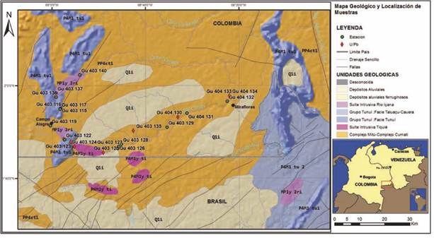 El Departamento de Guainía forma parte de la Amazonía colombiana, que se extiende desde las estribaciones de la Cordillera Oriental andina por la gran región suramericana compartida por Venezuela, Brasil, Colombia, Ecuador, Perú, Guyana, Surinam, y Bolivia. La Amazonía de Colombia es la zona menos poblada y estudiada del país y una gran parte del conocimiento geológico sobre ella se sustenta sobre investigaciones realizadas en el noreste del Cratón Amazónico sobre todo en territorio de Brasil y Venezuela (e.g.Almeida et al., 1981; Almeida et al., 2007; Amaral, 1974; Bettencourt et al., 1999, 2010; Brito-Neves, 2011; Gansser, 1974; Gaudette y Olszewski, 1985; Pinheiro et al., 1976; Santos et al., 2003; Tassinari y Macambira 2004; Teixeira et al., 1989; Teixeira et al, 2010).
