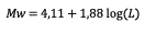 Adicionalmente se utilizó la relación propuesta por Stirling et al. (2008) que relaciona la longitud (L) de la ruptura en superficie y el ancho de deformación (W) para fallas oblicuas, de acuerdo con la ecuación: