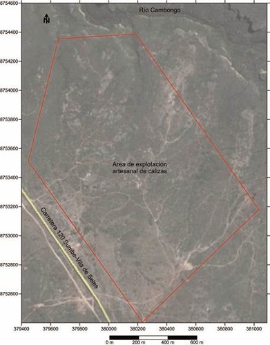 El área de explotación de calizas Pomba se localiza en los depósitos sedimentarios cretácicos de la Formación Quissonde. Limita al norte con el río Cambongo, al sur y oeste con la carretera nacional 120 que une la ciudad de Sumbe y la Villa de Seles, y al este con polígonos agropecuarios (Figura 5).