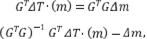 Para hallar m de la ecuación 7 es necesario invertir G, pero esta matriz no es necesariamente cuadrada. Para determinar m se utiliza el método de mínimos cuadrados, el cual consiste en multiplicar primero por la transpuesta y luego invertir la matriz. Conforme a esto la ecuación 7, se transforma en: