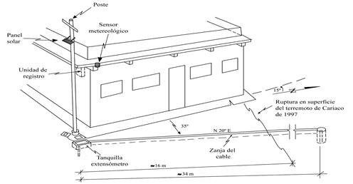 Con el propósito de estimar la amenaza sísmica, la cual pudiese ser aminorada en parte por la presencia de reptación en la falla El Pilar (Jouanne et al., 2011; Reinoza et al., 2015; Pousse-Beltrán et al., 2016), es crucial determinar si el movimiento es constante (continuo) o por el contrario es el resultado de crisis muy puntuales asociadas con este fenómeno (periódico). Para ello, se planteó el proyecto titulado Mediciones de Desplazamientos Lentos sobre la falla El Pilar (Venezuela), aunque se le identifica por el acrónimo VENCREEP, que posteriormente fue aprobado por la ANR. En una primera fase, esta iniciativa consistió en la instalación de un arreglo instrumental constituido por un extensómetro y dos receptores geodésicos ubicados al norte y sur de la falla El Pilar. El extensómetro consta de un sensor de variación lineal que detecta y mide el desplazamiento relativo en milímetros entre dos bloques separados por una falla geológica (Sydenham et al., 1969; Bilham et al., 2016). Adicionalmente, los datos suministrados por las dos estaciones geodésicas instaladas al norte y sur permitirán detectar y cuantificar el desplazamiento de la falla El Pilar en profundidad con la aplicación de modelados elásticos (Chinnery et al., 1961; Okada, 1985). Es decir, que ambos equipos -extensómetro y estaciones GPS‒ se complementan en cuantificar la deformación a través de la falla El Pilar, dado que el primero mide deformaciones en el campo cercano (frágil), mientras que las dos estaciones GPS en el campo medio a lejano (elástico), por estar separadas unos 10 km entre sí.