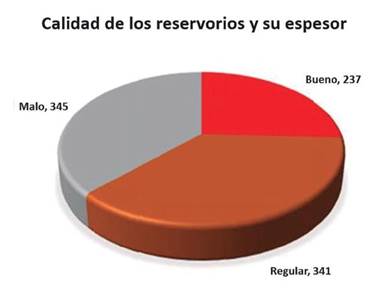 Desde el punto de vista del análisis sedimentológico, el área de Santa Cruz del Norte resulta muy prometedora. El 25% del espesor de todos los tramos estudiados (237 m) se consideran reservorios potencialmente buenos para la producción de gas. Un 37% se evalúan como regulares (341 m) y el 38% restante son de mala calidad (Figura 10).