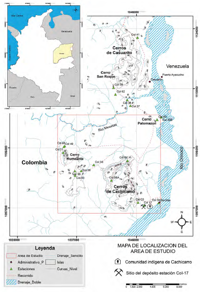 En especial a la Comunidad Indígena de Cachicamo por la colaboración en el acceso, reconocimiento y la recolección de muestras en el área de estudio. A los coinvestigadores del Grupo de Estudios en Geología Económica y Mineralogía Aplicada (GEGEMA). A Colciencias, al Servicio Geológico Colombiano (SGC) y al Fondo CTeI del Sistema General de Regalías por financiar los proyectos “Caracterización de mineralizaciones de niobio y tantalio en el oriente colombiano, su exploración, beneficio y posibles usos” e “Investigación de minerales estratégicos, industriales y materiales de construcción, Región Llanos”. No por último a María Alexandrovna Sitnikova, Torsten Graupner y Frank Melcher de la BGR Hannover y a Heinrich Adolf Horn (UFMG) por soportar con análisis MEB, MLA y EPMA. Mauricio Ibáñez y un revisor anónimo ayudaron en mejorar el manuscrito.