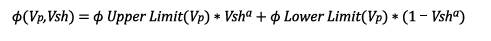 (2)Where φ corresponds to the total porosity, Vp corresponds to the P-wave velocity and Vsh corresponds to the shale volume. It is worth to mention that this equation is not in the literature and therefore it represents a that this equation is not in the literature and therefore it represents a new approach in this process of physical properties modeling.