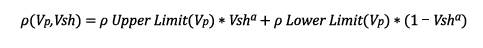 Using the same principle used to model the S-wave velocity, equations to model both the total porosity and the bulk density using as input the P-wave velocity and the shale volume for all the correlation wells in the interval of interest. In this context, equation 2 and 3 correspond to the expressions used to model the total porosity and bulk density where necessary.