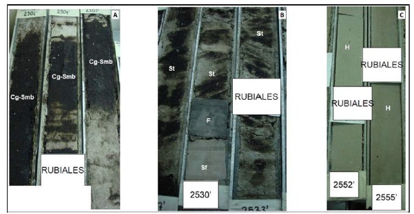 La totalidad de las arenas y areniscas del Cretácico (formaciones Une-Guadalupe) y las poco consolidadas del Cenozoico (formaciónes Barco, Mirador, y miembros impares de la Formación Carbonera C7, C5, C3 y C1), conservan buenas a excelentes propiedades petrofísicas constituyéndose como rocas reservorios y, además, algunas ofician como efectivas vías de migración en la cuenca. Sin embargo, la posición geográfica del estudio obliga a enfocarse en los niveles productivos de la Formación Mirador y miembros C7 y C5 de la Formación Carbonera. En términos generales, el contenido y distribución de arena disminuye en dirección este-oeste (área de aporte del cratón), del mismo modo que el carácter continental disminuye en dirección este-oeste. Estos reservorios son portadores de petróleos pesados biodegradados que varían en un rango de 12 a 21° API.