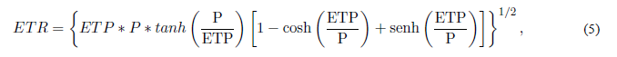 donde, ETR es la evapotranspiración real (mm/año), ETP es la evapotranspiración potencial (mm/año) y P es la precipitación media en la cuenca (mm/año).