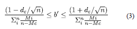 Donde b'=b/log10e, de=1,96 para una probabilidad (e) del 95% o un nivel de confianza del 95%. Aki (1965) define además los valores de de/√n para diferentes niveles de confianza y muestras.
