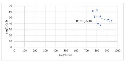 The ratio Na+:Cl− (1:0.7) indicates the precipitation of halite. The negative trend between Ca2+:Cl− (Figure 6) indicates the precipitation of calcite before halite, due to the difference in the solubilities of these mineral phases. In addition, the Ca negative deviation represents the local removal of cations by adsorption or ion exchange (Schijf, 2007).