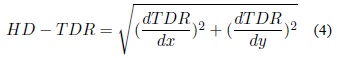 Donde VDR y THDR son la primera derivada vertical y la derivada horizontal total, respectivamente, de la intensidad total magnética T (reducida al polo).