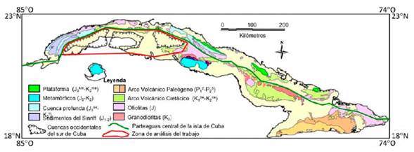 Mapa geológico digital de la República de Cuba a escala 1:100.000 del Instituto de Geología y Paleontología, Servicio Geológico de Cuba (IGPSGC) (Colectivo de Autores, 2010).