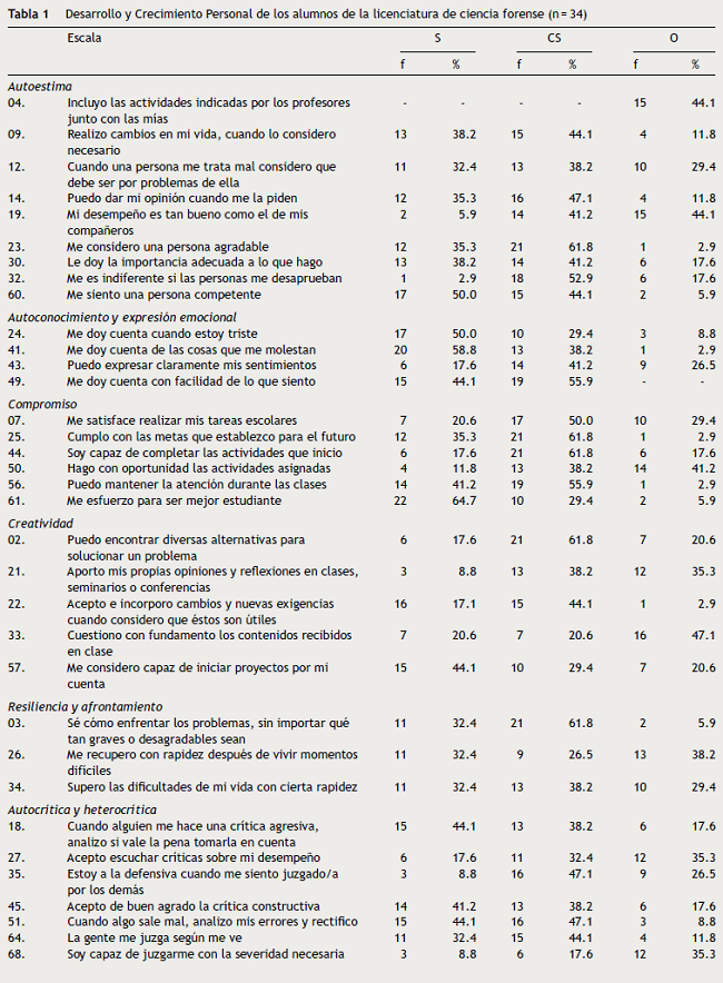 Personal development of first year forensic science students of the National Autonomous University of Mexico