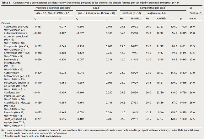 Estudio transversal, descriptivo, comparativo y correlacional de diferentes habilidades del desarrollo y crecimiento personal del estudiante que ingresa a la carrera de ciencia forense, así como su relación con el promedio de calificaciones obtenido durante el primer semestre.