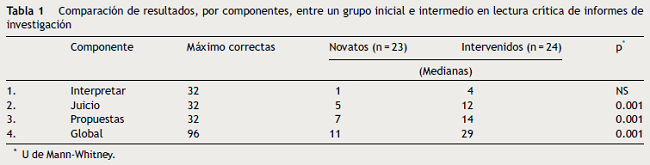 La lectura crítica de investigación continúa siendo una herramienta de aprendizaje muy poderosa necesaria para evaluar la información médica publicada en el medio científico, pero no se encuentra destacada en los planes de estudio de las universidades o de las instituciones de salud que forman a su personal relegando la necesidad de formación en este campo1. Se han publicado diferentes reportes para medir su desarrollo, encontrando, en forma persistente, resultados que se ubican en niveles de azar, a través de los años2.