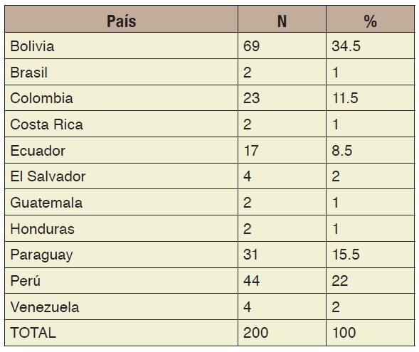 Los encuestados fueron 200 estudiantes de Medicina de Latinoamérica [ Tabla 1]. El 96% (n=192) de los estudiantes creen que el CI es importante al momento de investigar, el 4% restante (n=8) considera que “tal vez” puede ser fundamental en este contexto. El 91% (n=182) de la muestra conoce los usos del CI en investigación, este conocimiento facilitado en mayor medida por: clases de Bioética de la Universidad, 51% (n=102); autoaprendizaje de lecturas de artículos científicos, 28.5% (n=57); libros, 13% (n=26), y otros medios, 7.5% (n=15). Sobre la historia y evolución del CI, 56% (n=112) afirma conocerlo. Finalmente, 42% (n=84) de los estudiantes consultados han puesto en práctica la realización del CI para una investigación.