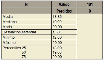 Results: The results in the PCA showed an appropriate sample adequacy and pertinent elements in the analyzed tool. The inner consistency for the tool showed a standardized value of 0.87, which provides evidence to assure that the items measure the same construct related with the pattern of answers among themselves.