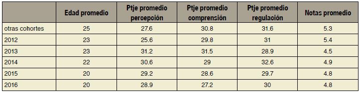 Del total de estudiantes encuestados de la cohorte 2015 en adelante, un 62,4% de ellos se encuentra con un avance curricular adecuado u óptimo. La cohorte 2013 presenta bajos niveles de regulación emocional en relación a las demás cohortes, y que esto coincide con que presenta los niveles más bajos de avance curricular. Esto podría explicarse, ya que según Mayer y Salovey (1997), esta habilidad alcanzaría los procesos emocionales de mayor complejidad, es decir, la regulación consciente de las emociones para lograr un crecimiento emocional e intelectual7.