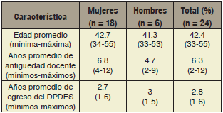Los 24 docentes incluidos cumplieron los criterios de selección, sus características principales se muestran en la tabla 1.