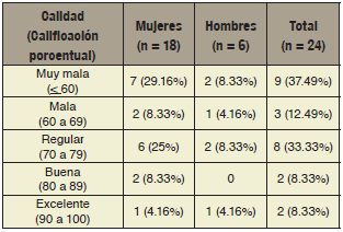 En la tabla 3 se muestra en porcentajes la evaluación de la calidad de cada una de las categorías que componen la REC-PD aplicada a las PD.